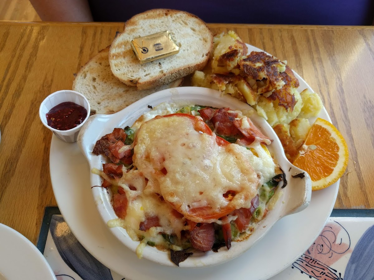 This place is a gem. I had the western shirred eggs, which were flavorful and the eggs were not all the way set, which I loved. Coffee was good too.